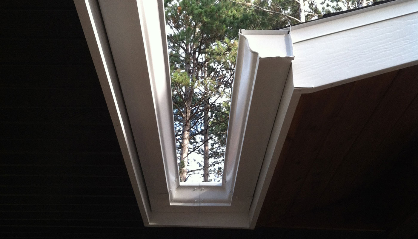 High volumes of water can overwhelm gutters in certain spots such as inside roof valleys. An inside roof valley is the point where two rooflines meet forming a 90° angle. This creates an inside corner with more water flow than any other area of the home and this increased volume always overshoots the gutter. Our solution to this problem area is our patented, stainless steel Inside Miter.